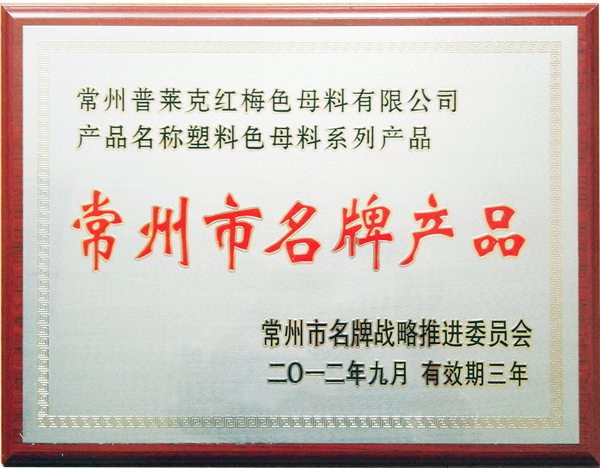 2012年9月,公司榮獲“常州市好牌子產品”稱號。