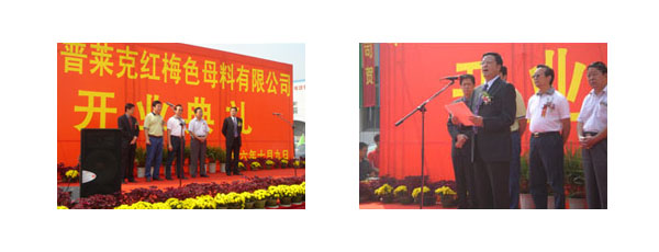 10月9日,常州市紅梅塑料色母料有限公司舉行了新廠 — 常州普萊克紅梅色母料有限公司盛大的開業(yè)慶典儀式,參加這次活動的480多名來賓中主要包括公司的重點業(yè)務(wù)單位、供應(yīng)商以及部分協(xié)作單位的有關(guān)人員,其中包括—些國外重要的合作伙伴等,活動期間公司還為長期合作的36個分銷商舉行了授牌儀式。